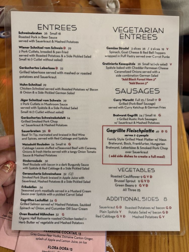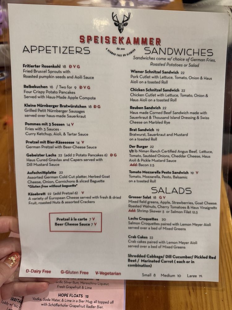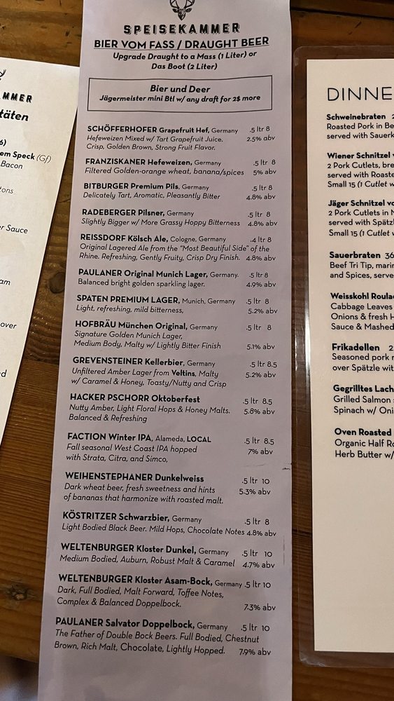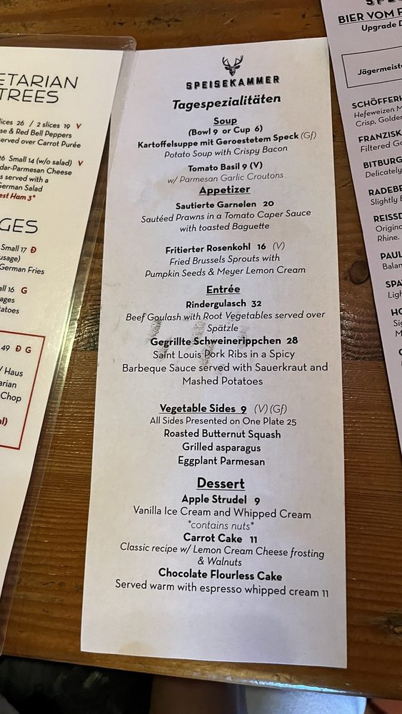 Vegetarian and vegan options are abundant, showcasing dishes like roasted cauliflower and the vibrant German salad, making it accessible for all diners. Diners can enjoy the lively ambiance while savoring generous portions of traditional fare. With a selection of local brews and happy hour specials, Speisekammer not only excels in food but also in providing a welcoming environment for families and friends alike.